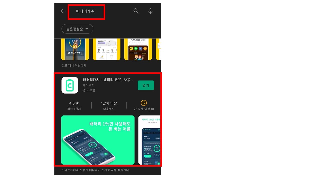 설치법은 스토어에 가셔서 배터리 캐시라고 검색하시면