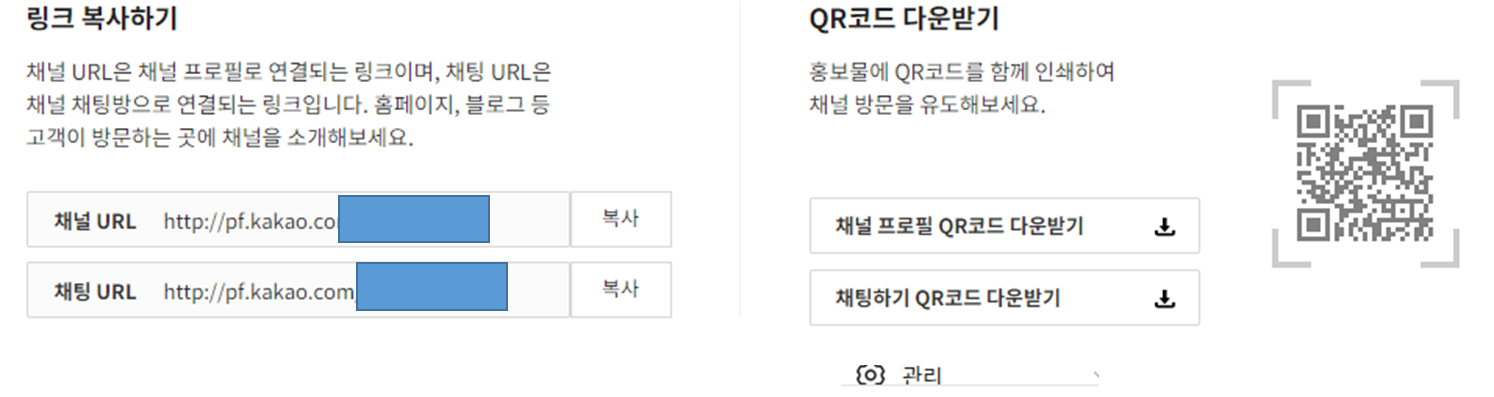 채팅 URL도 있고 QR코드 다운로드하기도 있습니다 활용하실 분들은 활용하시면 됩니다