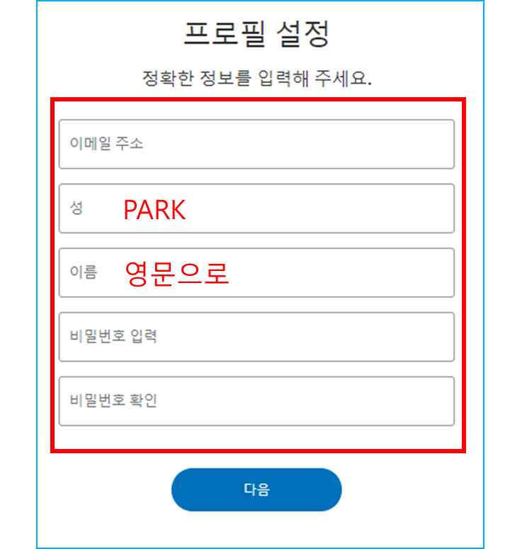 5. 이메일 이름 비밀번호 입력합니다(gmail 추천 연동이 잘되는 것 같음)