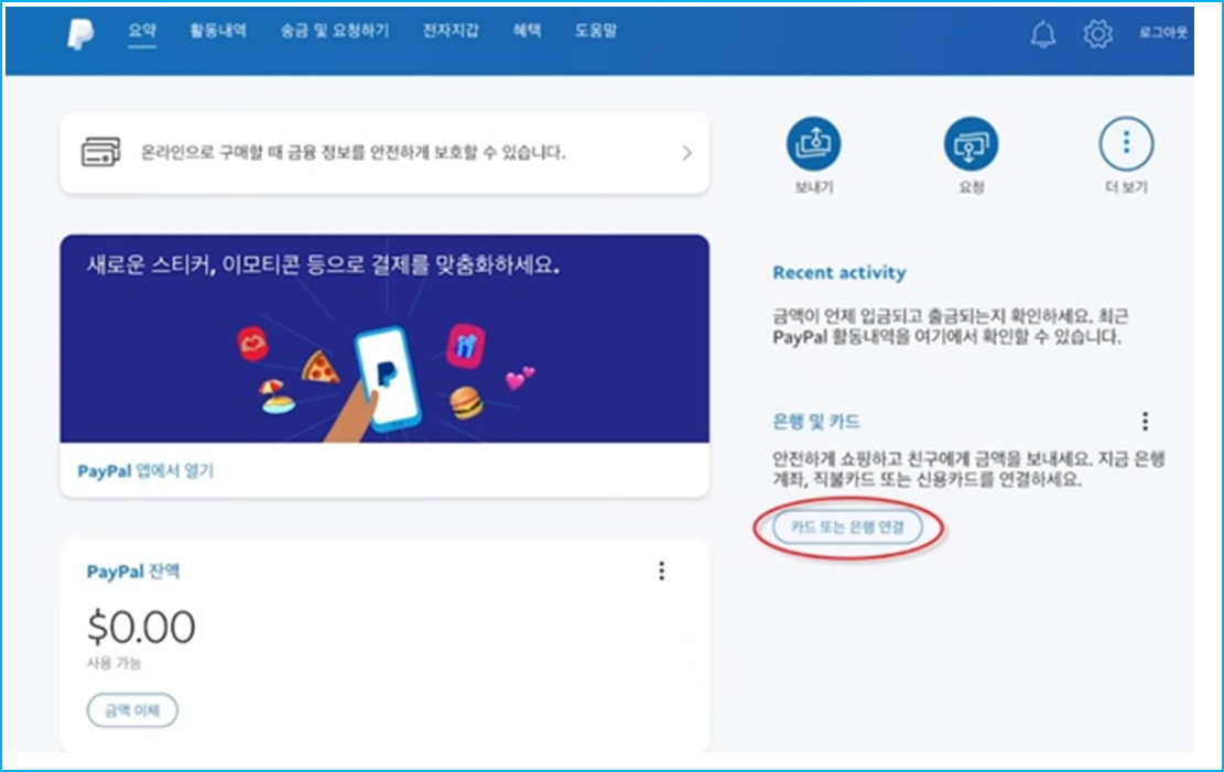 9. 카드 또는 은행 연결 클릭
