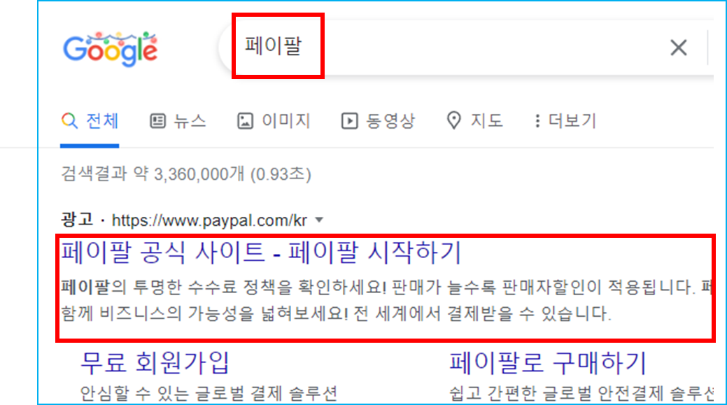 1. 구글 검색 후 페이팔 검색후 홈페이지 접속합니다