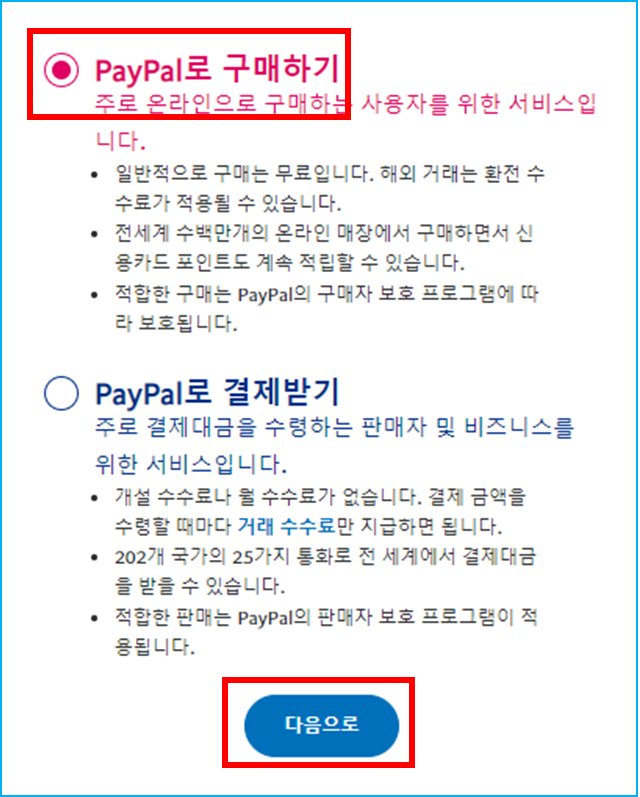3.PayPal로 구매하기 체크 후 다음으로 넘어가세요