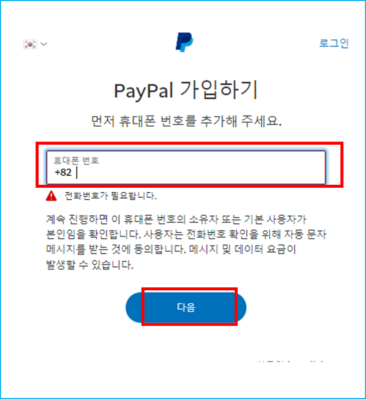 4. 전화번호 입력 후 다음 누르면 인증번호가 문자 로오고 인증번호 입력합니다