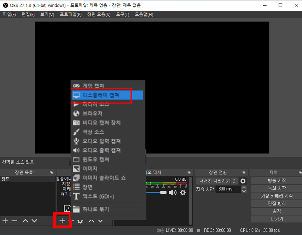 5. + 버튼 누르시고 디스플레이 캡처 누르시고 확인 누르시면 됩니다