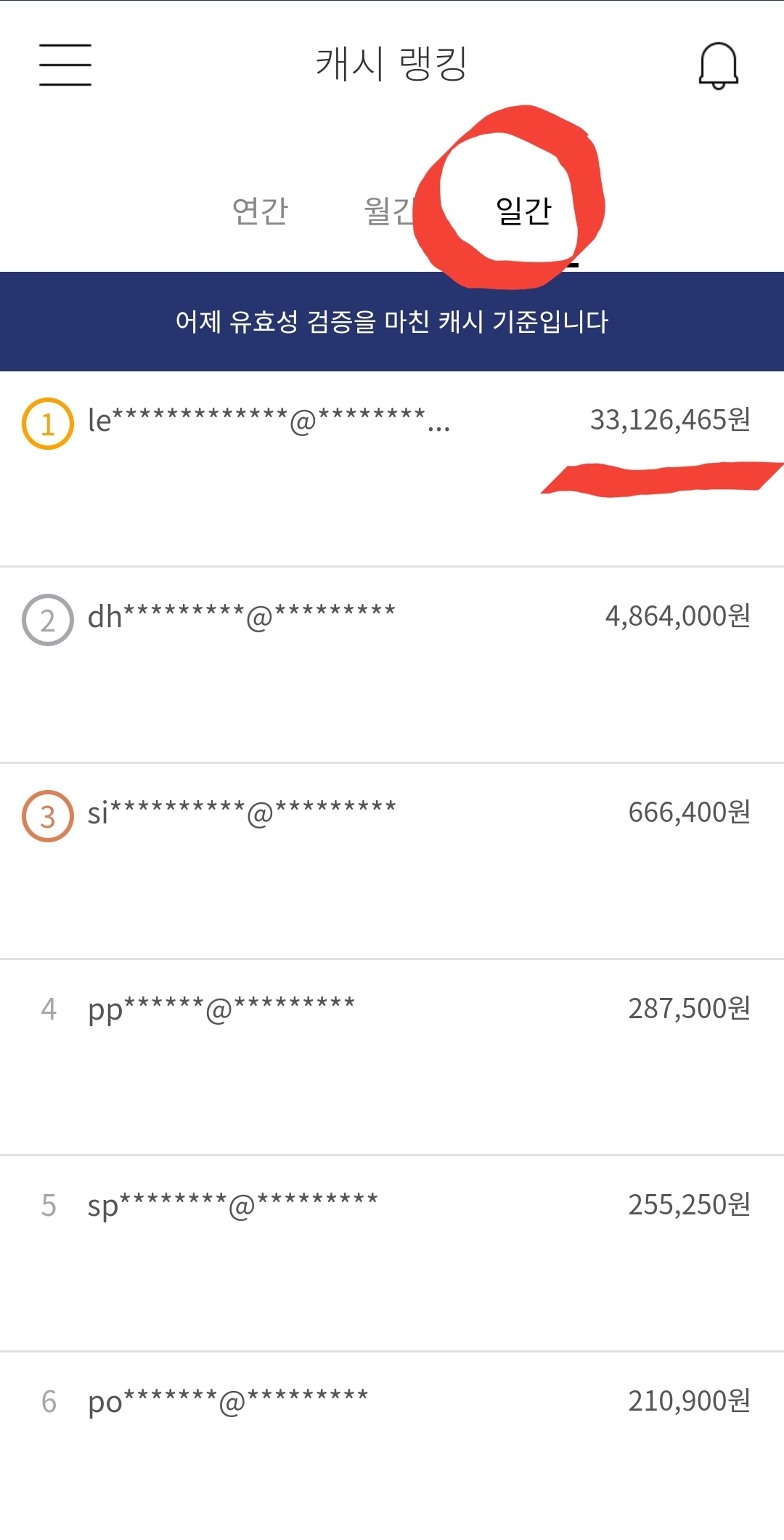오늘 일일 수익랭킹도 보여드릴게요 어마어마합니다.