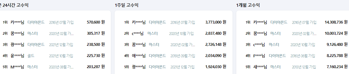 커뮤니티에 랭킹 보시면 상위 랭킹이 나오는데 어마어마하죠..